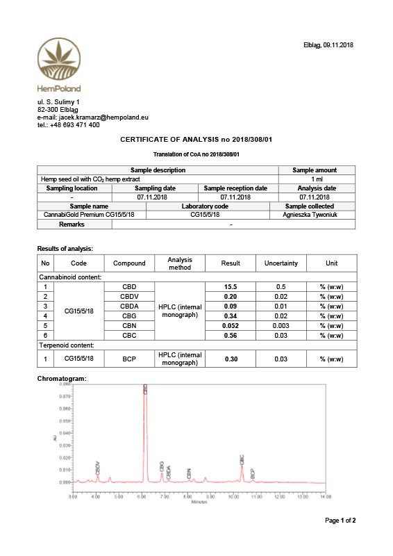 GaiaLab CBD kapljice 1000 mg imajo vse potrebne laboratorijske teste težkih kovin, pesticidov in umetnih gnojil. Proizvedene so v laboratoriju, ki sledi strogim GMP standardom.